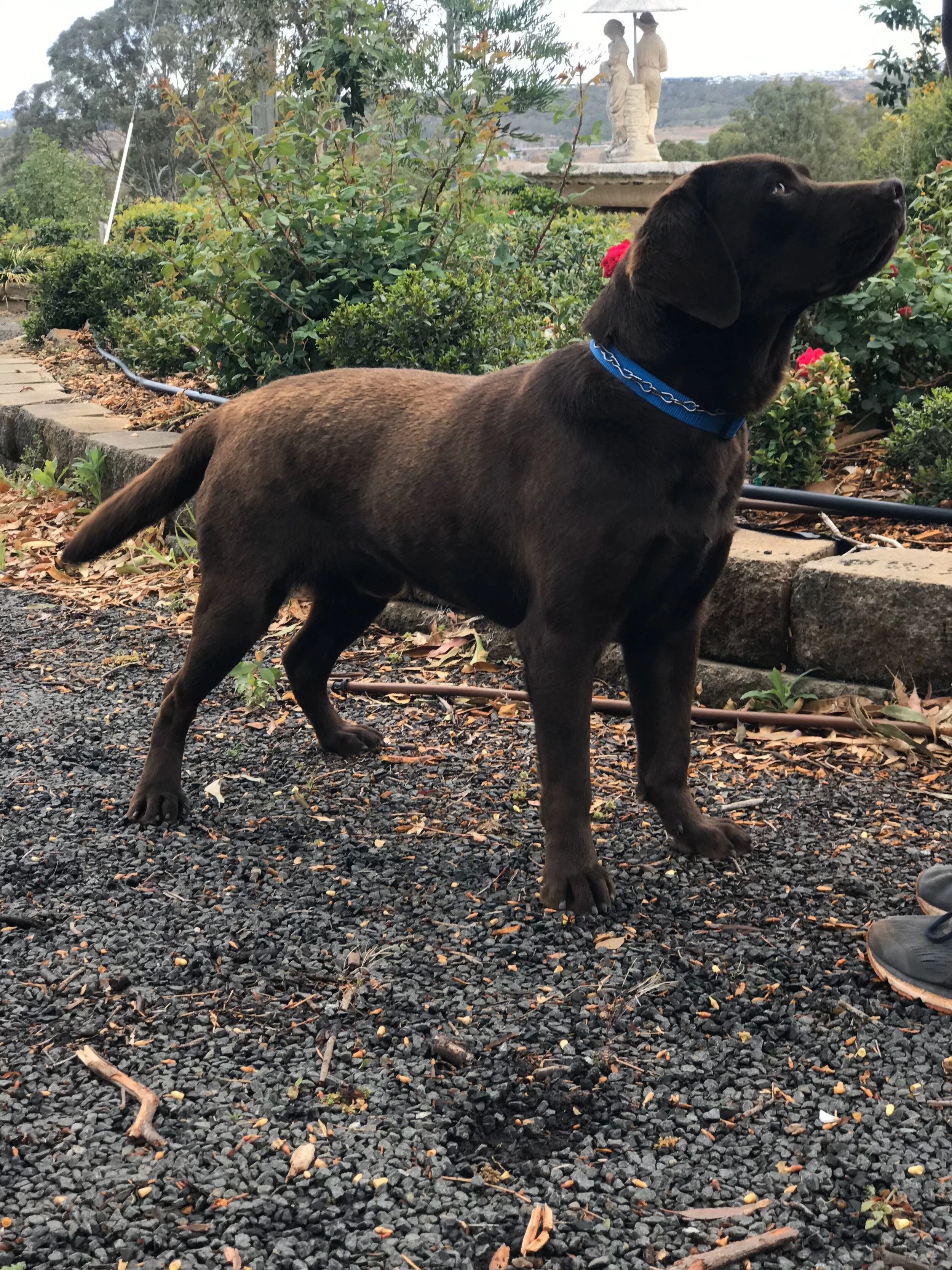 SOLOMON is an wonderful family pet who loves his daily walk. He enjoys obedience training and has achieved Level 5. Our boy is affectionate, friendly and highly intelligent . He's great with strangers and children. His coat is tending to a darker chocolate colour.